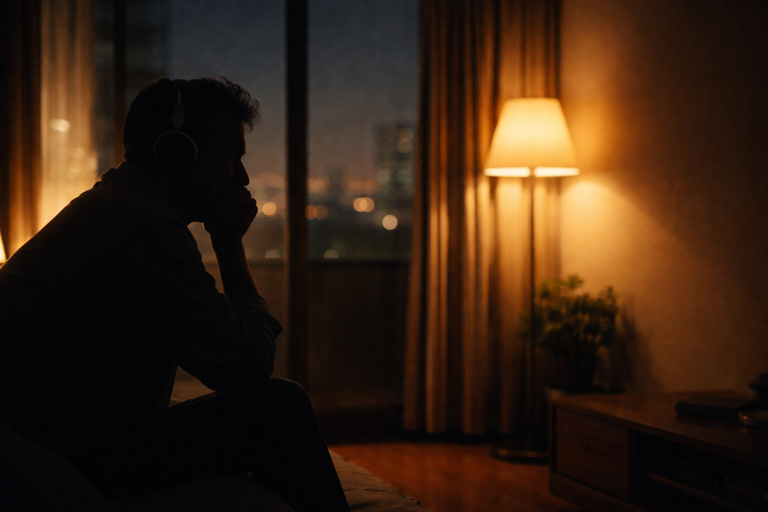 夜、部屋の灯りを少し落として、イヤホンをつけた。